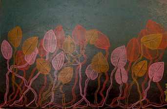 Kassandras planta i Medelhavet, akryl och tusch på trä, såld