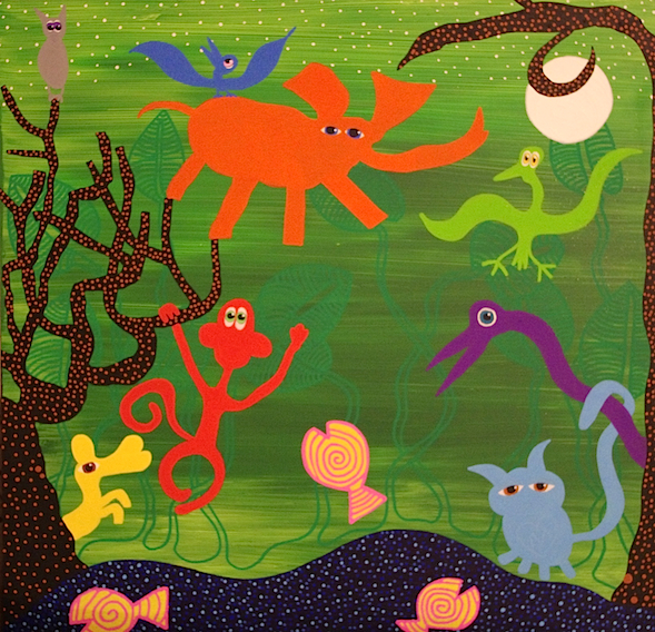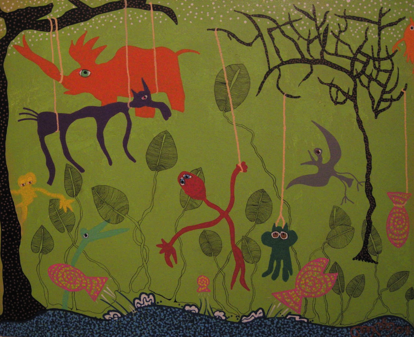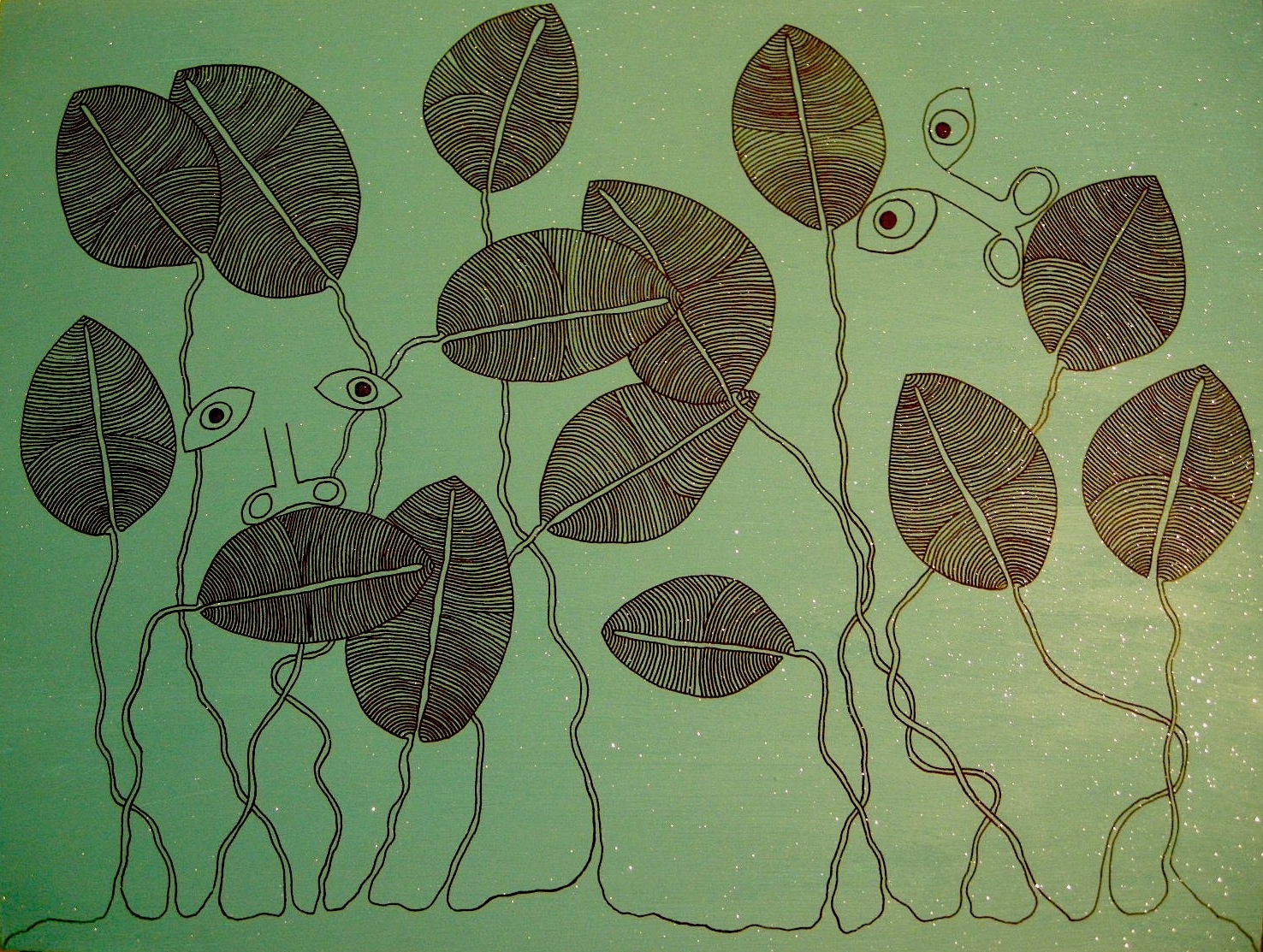 Märthas hemliga djungel, akryl och tusch på trä, privat