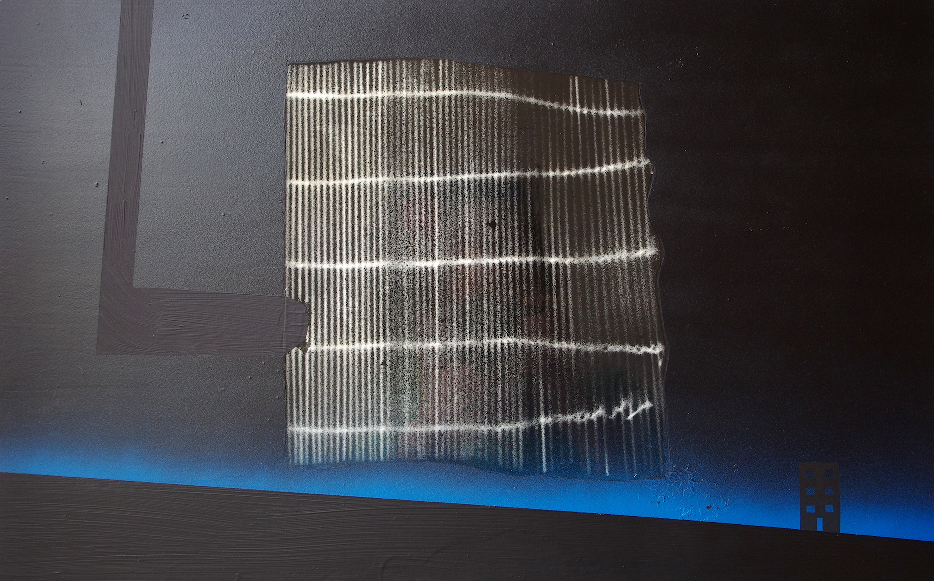 En regnig eftermiddag, Akryl, spray och tusch på trä