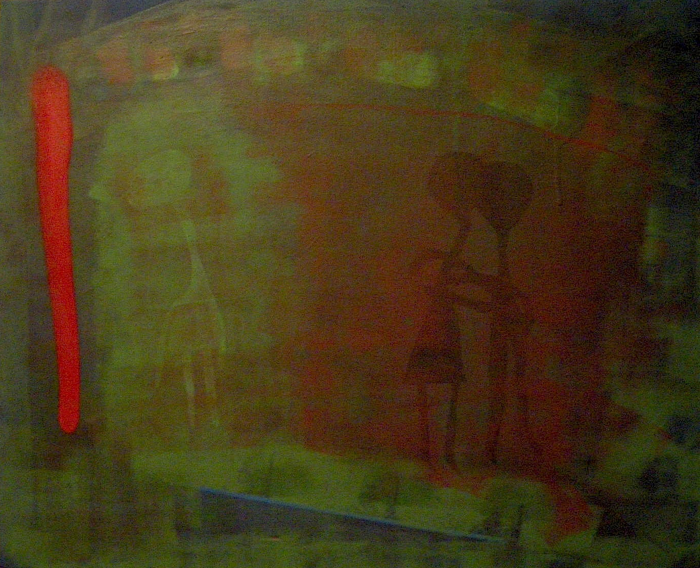 Det sista besöket, 67x46 cm, akryl, spray och tusch på trä